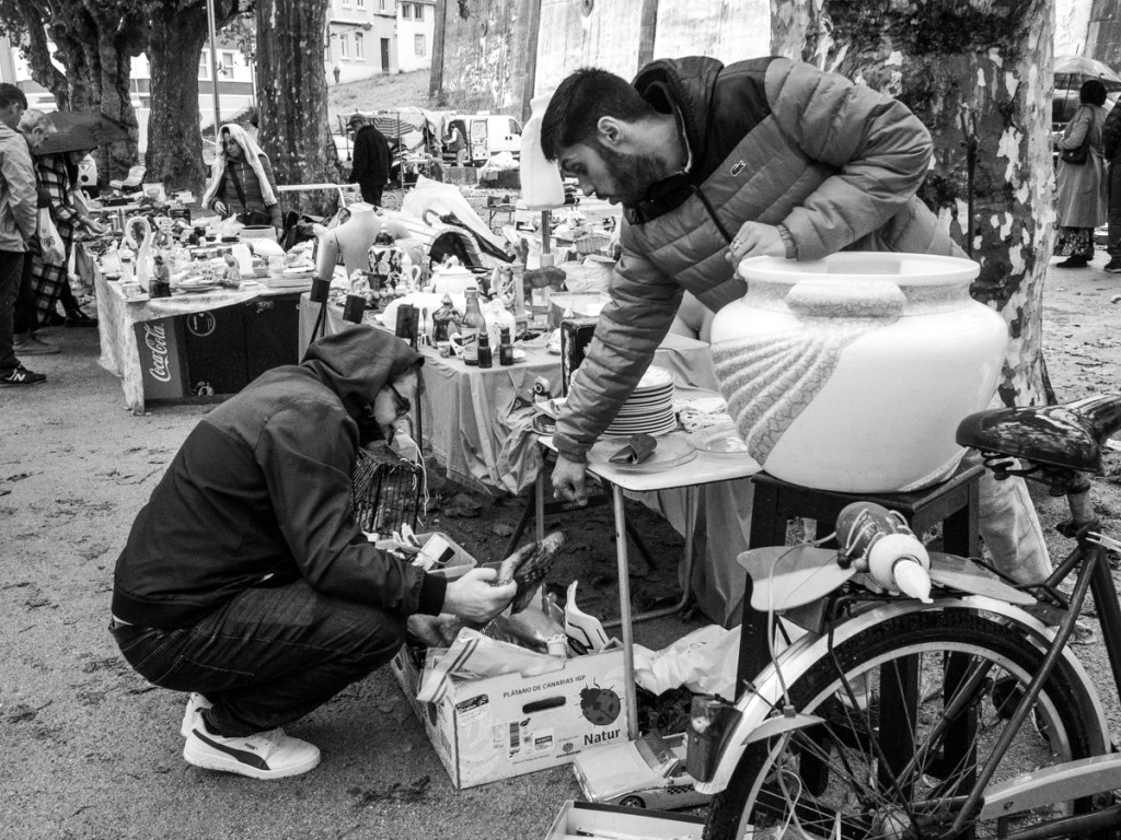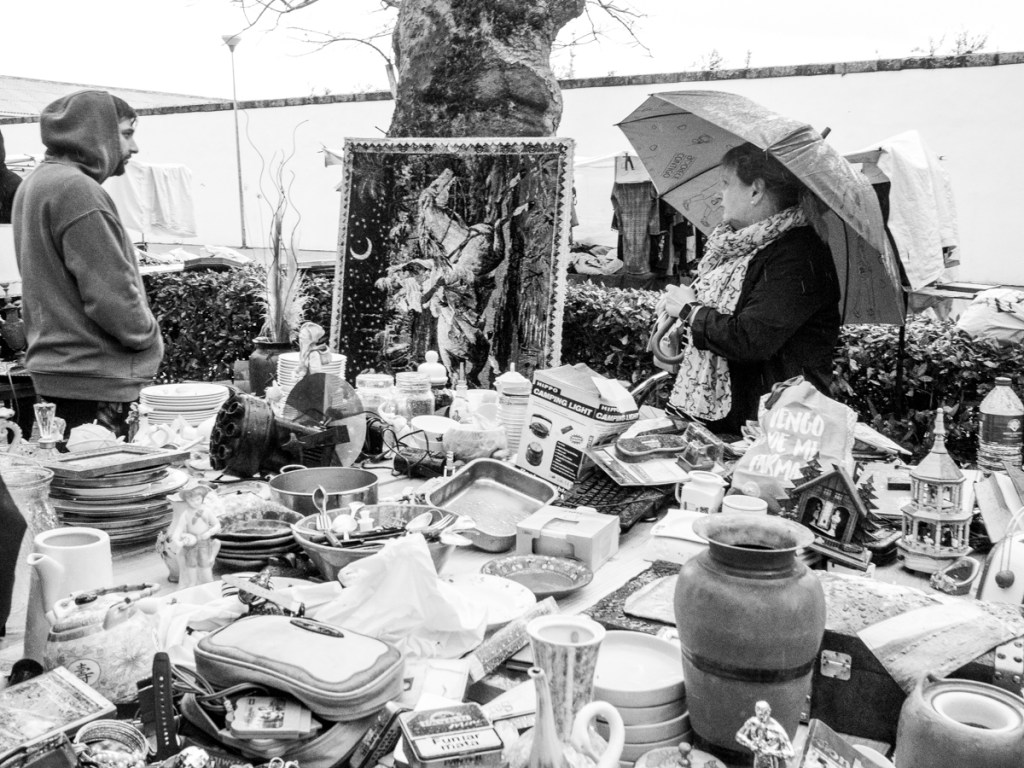 El segundo domingo de cada mes se celebra en Ferrol un mercadillo de objetos de segunda mano, se suelen encontrar alguno interesante y mucha afluencia de público. El día que fui no estaba especialmente apacible y la lluvia ensombrecía lo que debería ser una mañana de mercadeo.