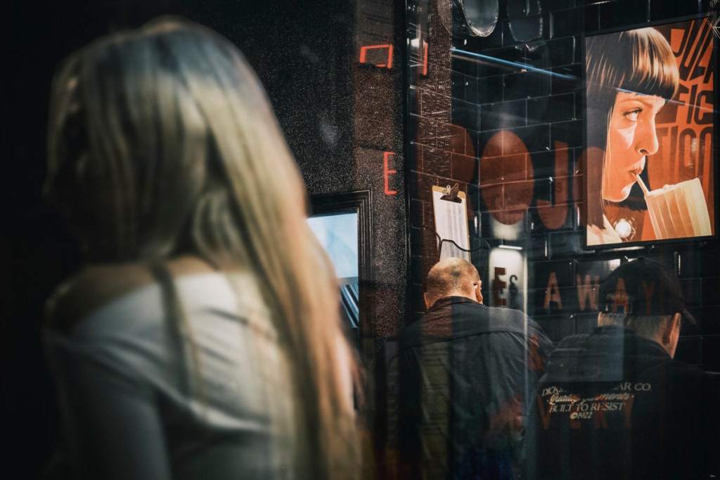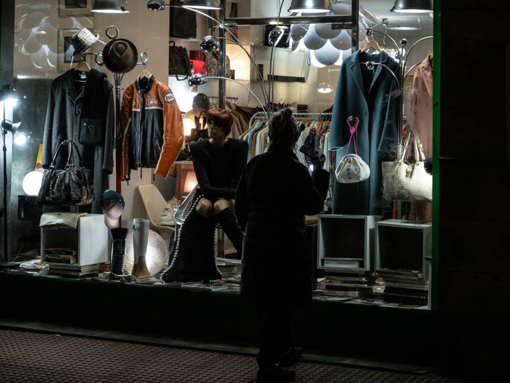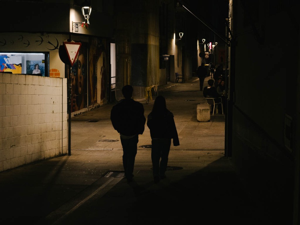 En la noche, las luces y las sombras se convierten en los elementos para crear una atmósfera misteriosa llena de contrastes. La luz artificial predomina en el entorno con una alta gama de colores que invaden la ciudad. Las sombras definen formas y texturas mientras que las luces crean destellos y todo en el conjunto del movimiento urbano. Luz y sombra juegan un papel prominente en la creación de imágenes cautivadoras.