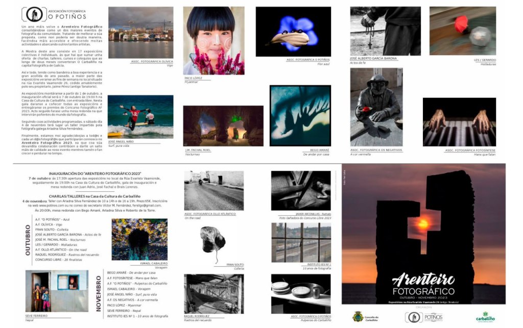 OlloAtlántico ha tenido el placer de participar en el Arenteiro Fotográfico que se celebró en el mes de octubre, promocionado por la Asociación Fotográfica O Potiños, en O Carballiño, junto a un elenco de fotógrafas y fotógrafos de ámbito regional y nacional.