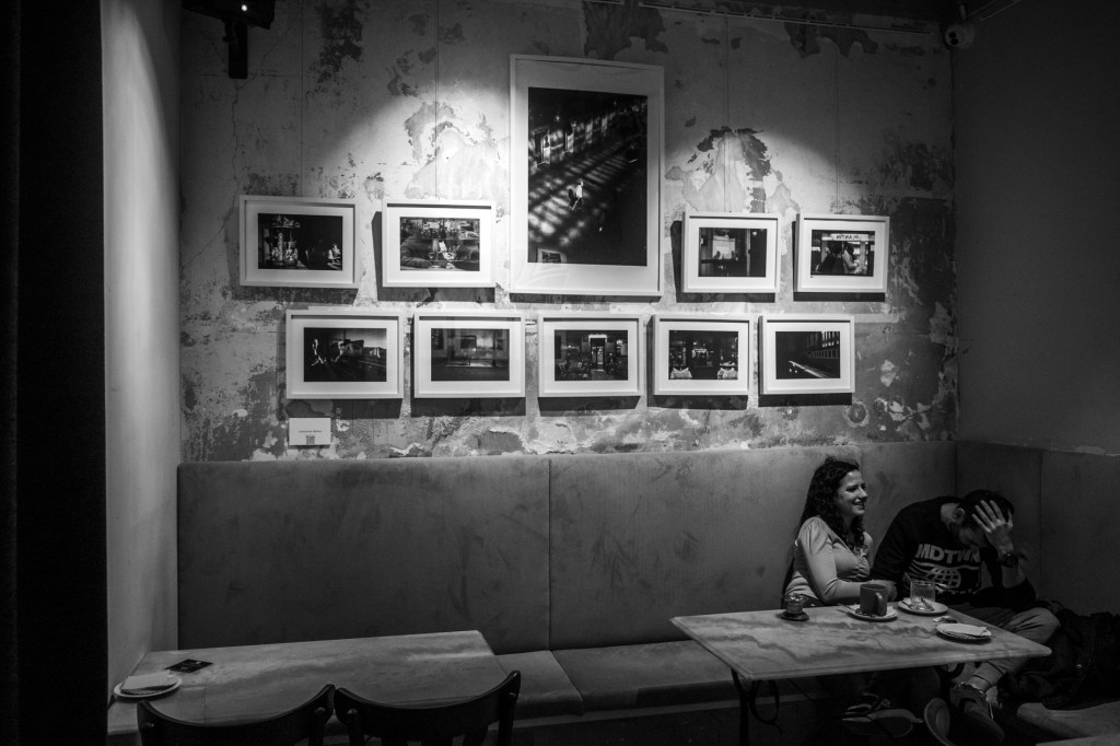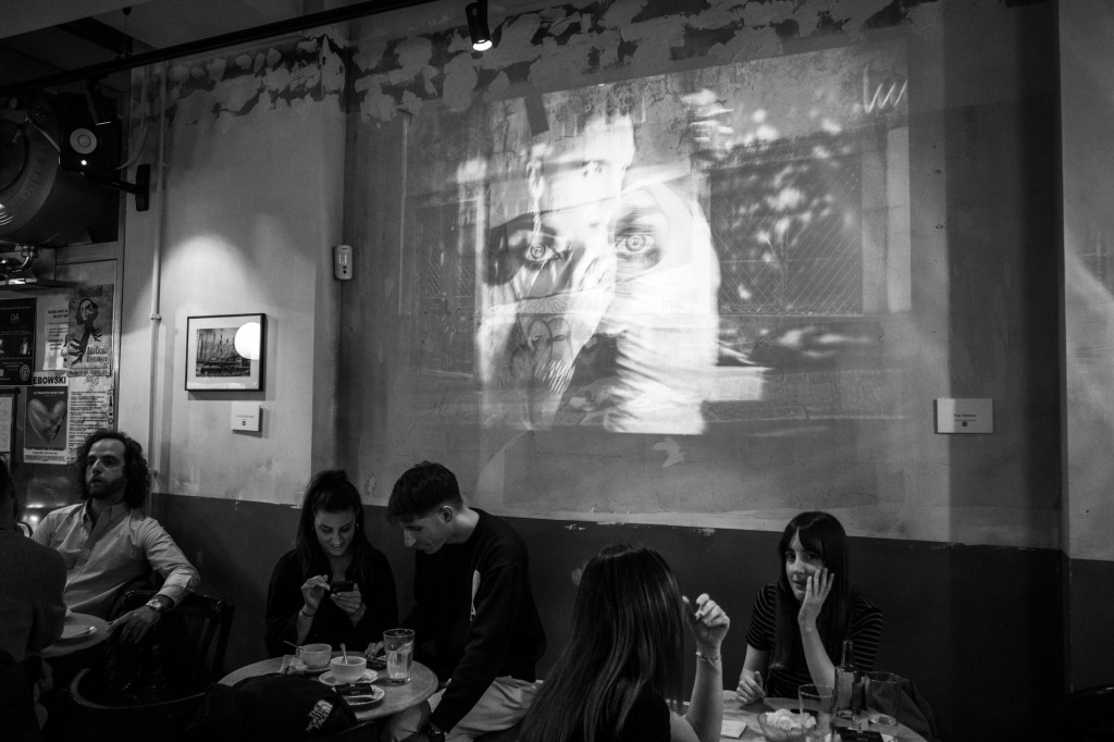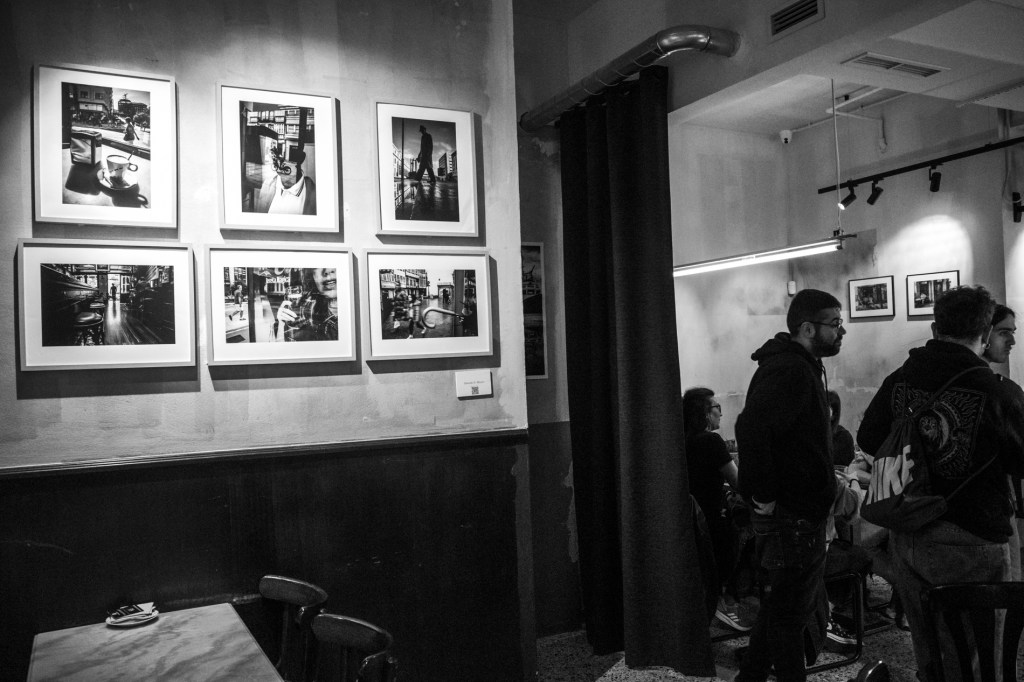 Desde el 15 de abril hasta el 1 de junio, el colectivo OlloAtlántico colgó la exposición «En el tiempo, la imagen» en las paredes del Café Universal de la ciudad de A Coruña.